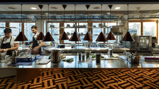 I den välkända byggnaden på Birger Jarlsgatan huserar restaurang Noema på entréplan. Kökspennan har varit med i projektet sedan start.